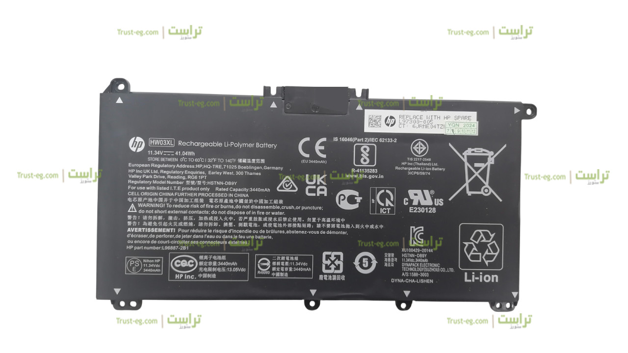 الكلمات الدليلية : أصلي, أوريجنال, Genuine, Original, HP 15-DW, HP 17-CN, HP 15-EG, HP 15-EH, HP 17-CP, HP 15-DW4011NIA, HP 15-DW4012NQ, HP 17-CN0063UR, HP 17-CN0067UR, HP 17-CN3000CA, HP 17-CP0574NG, HP 17-CP2245NG, HP 17-CP2819NO, HP 17S-CU2015TU, HP Pavilion 15-EG0007UR, HP Pavilion 15-EG0057NL, HP Pavilion 15-EG0075NF, HP Pavilion 15-EG0373NIA, HP Pavilion 15-EG0521TU, HP Pavilion 15-EG1023TX, HP Pavilion 15-EG2012NQ, HP Pavilion 15-EG2102TU, HP Pavilion 15-EH0015NF, HP Pavilion 15-EH1006NB, HP Pavilion 15-EH1050AU, HW03XL, HW03041XL, L96887-541, HSTNN-IB9O, HSTNN-LB8U, L96887-1D1, HSTNN-IB90, L97300-005, L96887-2B1, HSTNN-DB9Y, HSTNN-UB7W, L96887-AC1, بطارية لاب توب اتش بي, 11.34 فولت, 3440 ملي/أمبير, 41.4 وات, بطارية اتش بي, HP Battery, HP Laptop Battery, 11.34v, 3440mAh, 41.4Wh, بطارية لابتوب, بطارية لاب توب, Battery, Laptop Battery, Battery Laptop, قطع غيار لاب توب, Laptop spare parts, تراست ستورز