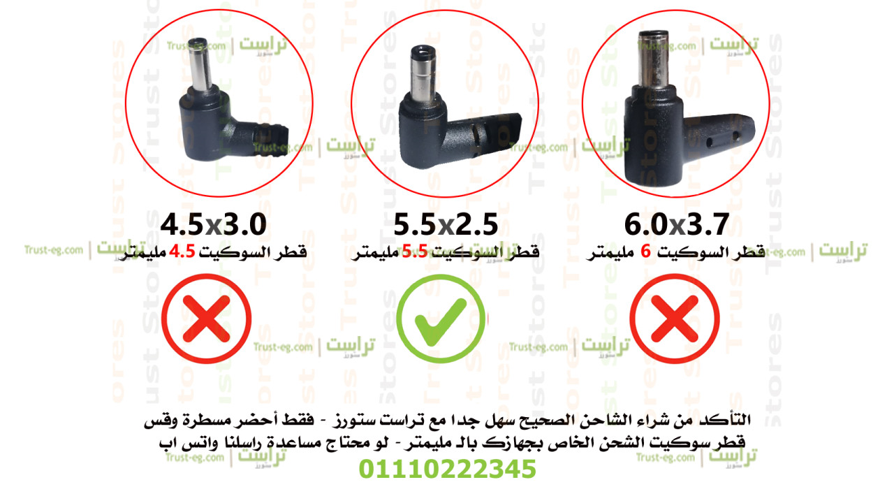 نوع سوكيت الشحن: 5.5x2.5 انظر الصورة المرفقة (تأكد من مطابقة الصورة مع اصل سوكيت الشحن المتوفر مع جهازك)