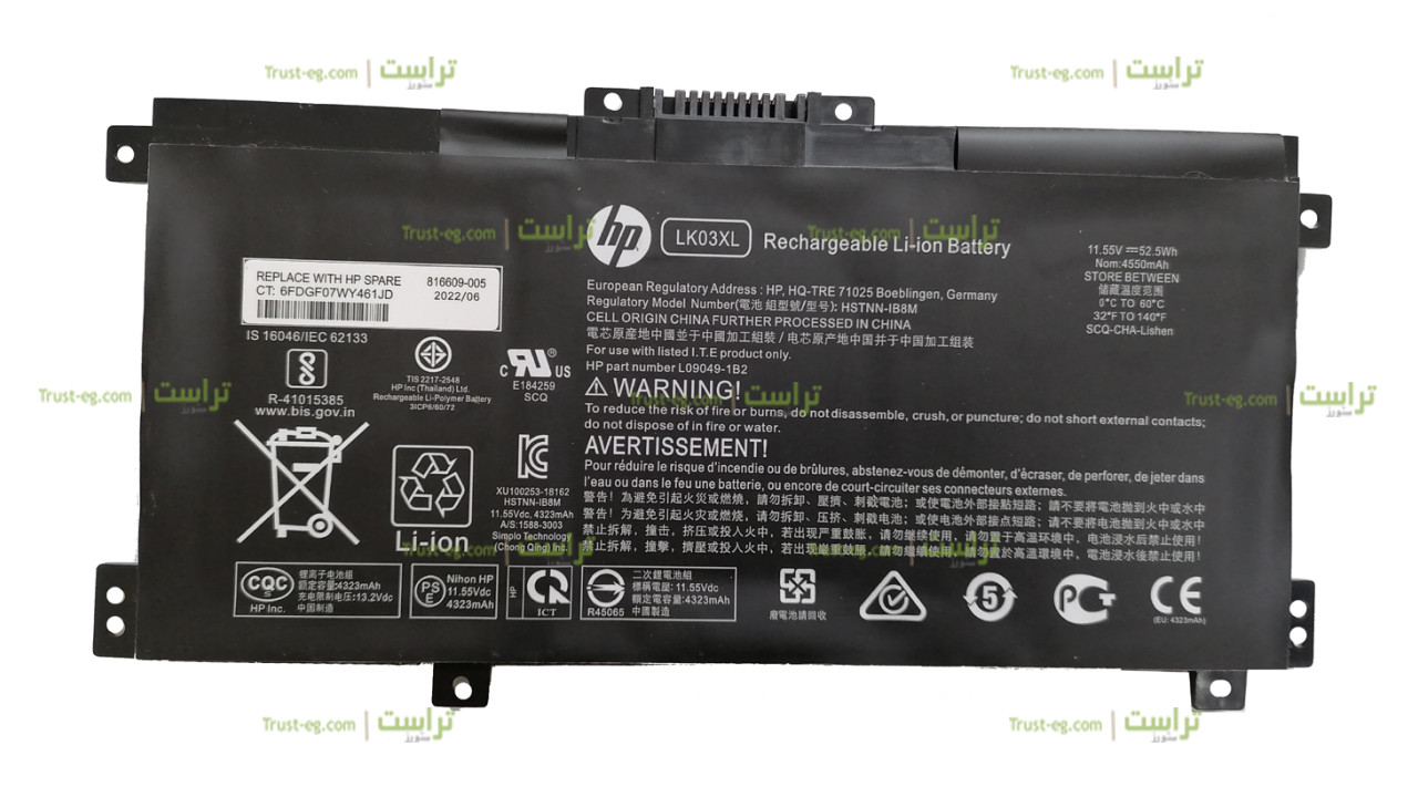 الكلمات الدليلية : أصلي, أوريجنال, Genuine, Original, HP Battery, HP pavilion 360 15-cr, HP Envy 360 17-ce, HP Envy 360 17m-ce, HP Envy 360 17t-ce, HP Envy 360 17-bw, HP Envy 360 17m-bw, HP Envy 360 17t-bw, HP Envy 360 17-ae, HP Envy 360 17t-ae, HP Envy X360 17m-ae, HP Envy X360 15m-cp, HP Envy X360 15z-cp, HP Envy X360 15m-bq, HP Envy X360 15-bq, HP Envy X360 15-cn, HP Envy X360 15m-cn, HP Envy X360 15t-cn, HP Envy X360 15-bp, HP Envy X360 15m-bp, Battery, HP Envy 17-AE004NB, HP Envy 17-AE004NV, HP Envy 17-AE008CA, HP Envy 17-BW0011NF, HP Envy 17-CE0003UR, HP Envy 17-CE0022NB, HP Envy 17-CE1000NF, HP Envy 17-CE1016NM, HP Envy X360 15-BQ009UR, HP Envy X360 15-CN0001UR, HP Envy X360 15-CN0100NG, HP Envy X360 15-CN0998NIA, HP Envy X360 15-CN1002UR, HP Envy X360 15-CN1004UR, HP Envy X360 15-CN1008NO, HP Envy X360 15-CN1076NR, HP Envy X360 15-CP0010UR, HP Pavilion X360 15-CR0004NF, HP Pavilion X360 15-CR0070NB, HP Pavilion X360 15-CR0211NG, , 916368-541, 916814-855, L09281-855, LK03XL, L09911-421, LK03048XL, LK03052XL, LK03055XL, TPN-I129, TPN-W127, TPN-W128, بطارية لاب توب اتش بي, 11.55 فولت, 52.5 وات, بطارية اتش بي, HP Battery, HP Laptop Battery, 11.55V, 52.5Wh, بطارية لابتوب, بطارية لاب توب, Battery, Laptop Battery, Battery Laptop, قطع غيار لاب توب, Laptop spare parts, تراست ستورز